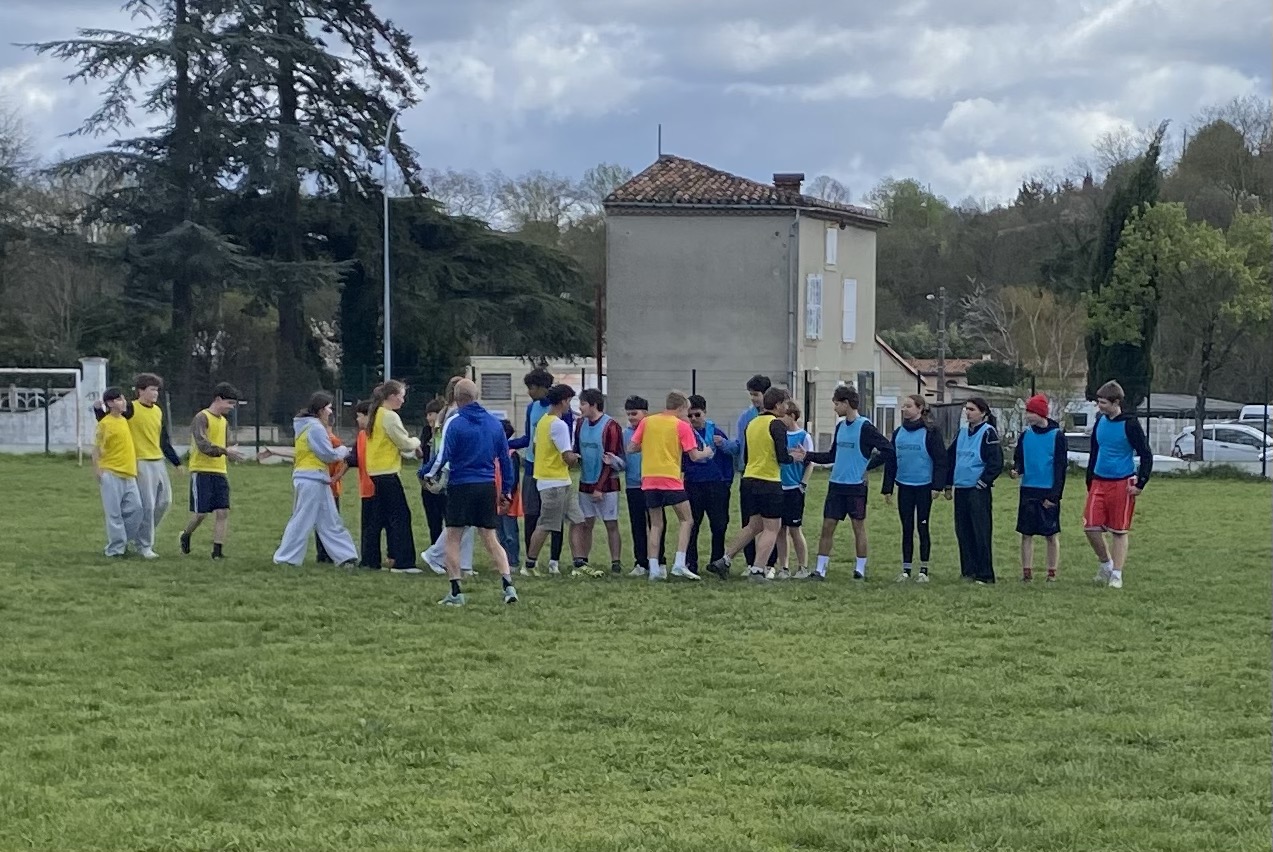 Am letzten Tag gab es sportliche Spiele. Zum einen bekam man eine Einführung mit anschließendem Spiel in den Sportart Rugby. Diese ist in Frankreich sehr verbreitet und beliebt. Zum anderen haben wir kooperative Spiele gespielt, bei denen man die Teamfähigkeit ausbauen konnte. Nach einem Mittagessen in der Mensa der Schule gab es ein spannendes Fußballspiel mit gemischten Teams (deutsche und französische Schüler gemischt). Es spielte der „Olympique Baguettes Allemandes“ gegen den „F.C. Bretzel“. Die Stimmung bei den Zuschauern war gut, es gab sogar einen Pokal, den man gewinnen konnte. Sieger mit 4:3 war der „F.C. Bretzel“. Abschließend haben wir noch an einer Stadtrallye in der Altstadt von Castres mitgemacht. Man musste anhand von einer Karte und Bildern Orte in Castres finden und ein Rätsel lösen. Um die gemeinsame Zeit zu beenden, gab es am Abend in der Schule ein Abschiedsessen mit allen Familien und Lehrern. So wurde der Austausch mit vielen schönen Erinnerungen, Erfahrungen und tollen Erlebnissen beendet.